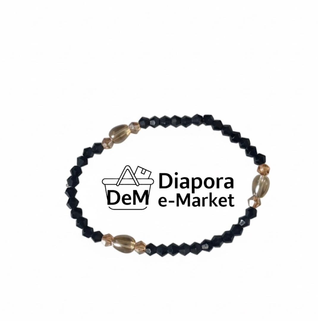 * Design Principal : Le corps du bracelet est constitué de petites perles à facettes de couleur noire ou jais. Les facettes captent la lumière, conférant un éclat discret à la perle noire.