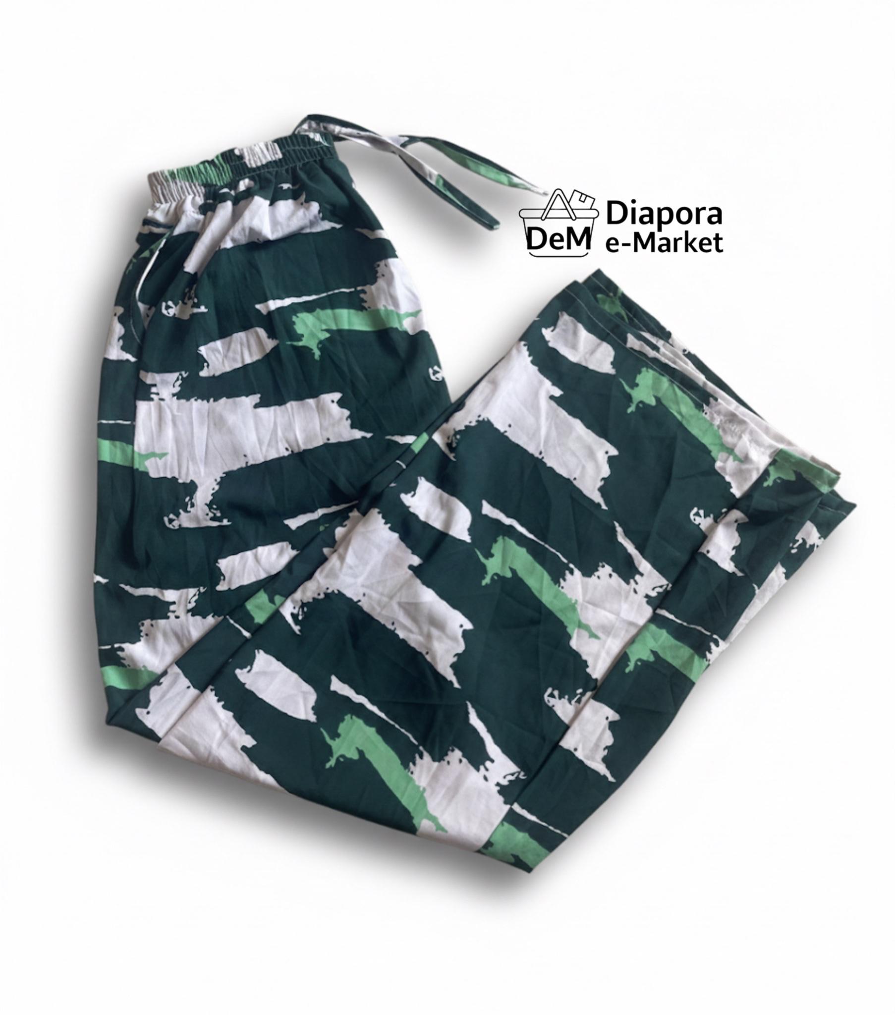 Adoptez un look audacieux et décontracté avec notre pantalon fluide à l’imprimé abstrait inspiré du camouflage moderne. Parfait pour allier style et confort au quotidien ou lors de vos moments de détente.